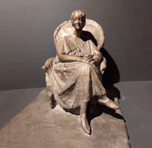 La “Giovane sposa” che siede in un’elegante poltrona può essere avvicinata, per la posa e l’accurata esecuzione, a tutta la produzione ritrattistica a soggetto femminile di Archinti degli anni Venti quando lo scultore, specie per quanto concerne i lavori su commissione, coniuga brani di modellazione levigata ad altri di più dinamica e vibrante trattazione della materia: la ricerca di verosimiglianza con il soggetto-modello lo orienta verso volumi più descrittivamente realistici.