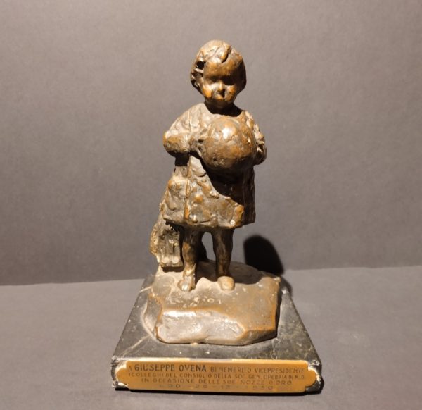 sulla placchetta applicata al basamento: “A Giuseppe Ovena benemerito vicepresidente. I colleghi del Consiglio della Soc. Gen. Operaia di M.S in occasione delle sue nozze d’oro. Lodi – 26 – 12 – 1930”.