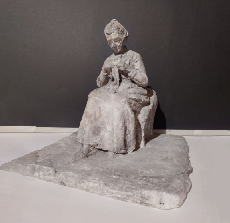 Il titolo della scultura raffigurante un’anziana donna seduta in poltrona, intenta a lavorare a maglia con il gomitolo di lana in grembo, ne richiama un altro, riferito a un’opera che ha invece per soggetto una giovane ragazza, dedita alla stessa attività: Primi lavori, databile, nella versione in gesso oggi in collezione privata, ai primi anni del ‘900.