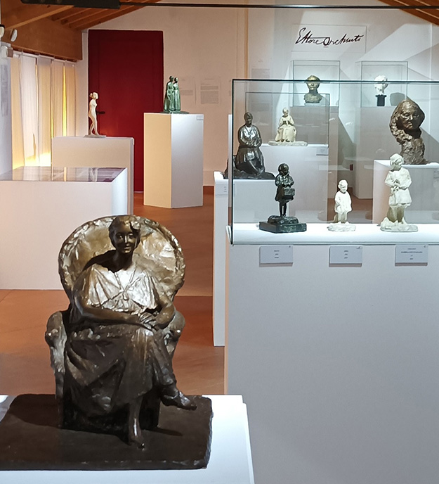 • Primo piano – collezione storica con gessi, bronzi e reperti della fucina originale di Archinti, documenti, foto, lettere e pamphlet socialisti